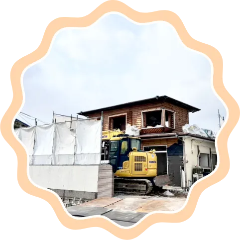 ご近隣の皆様への挨拶やご説明、騒音・振動対策も万全で、丁寧な解体作業を徹底しています。